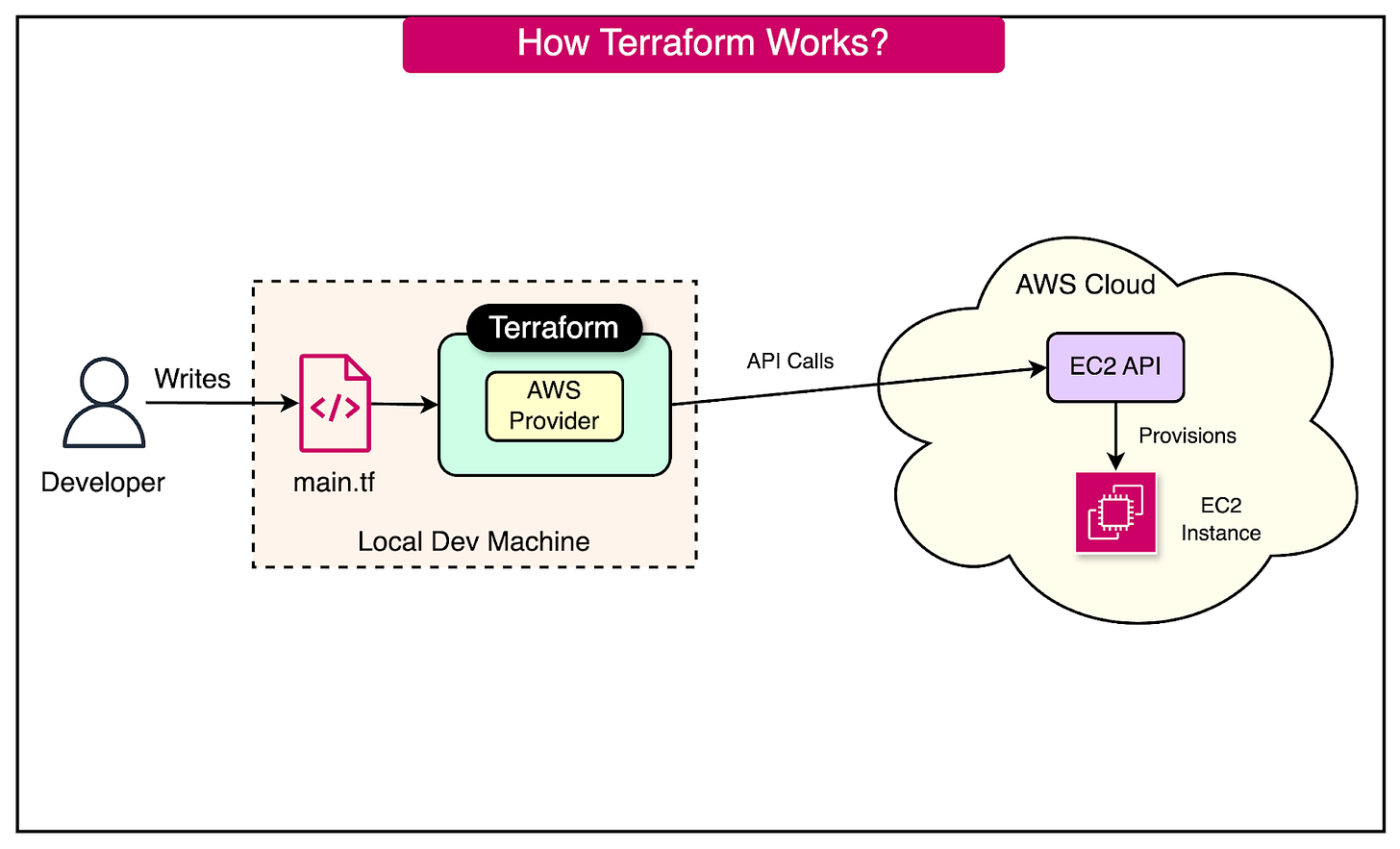See the diagram below that explains how Terraform works to provision an AWS EC2 instance.
