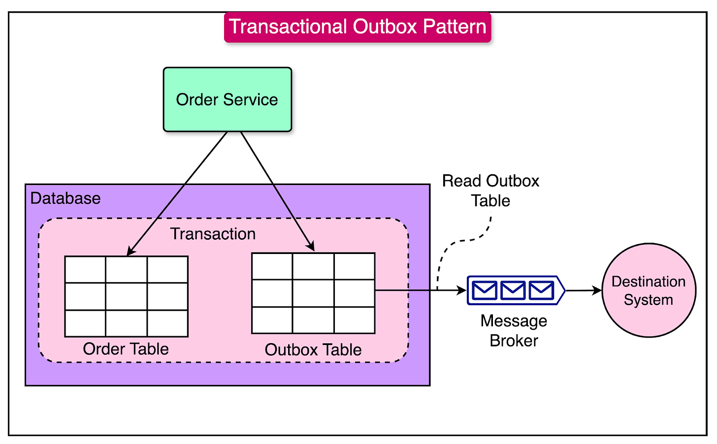 This pattern decouples event production from consumption, allowing for reliable event delivery without risking inconsistencies due to partial failures.