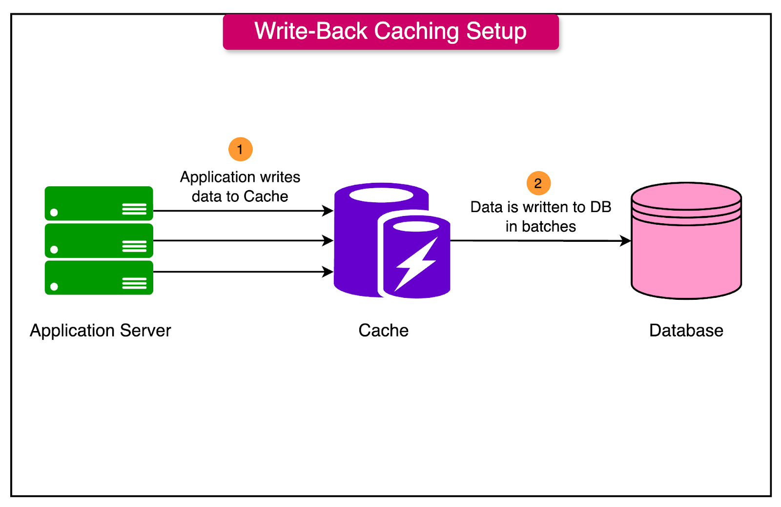 When the application writes data to the cache, the update is held in the cache without immediately writing it to the database.