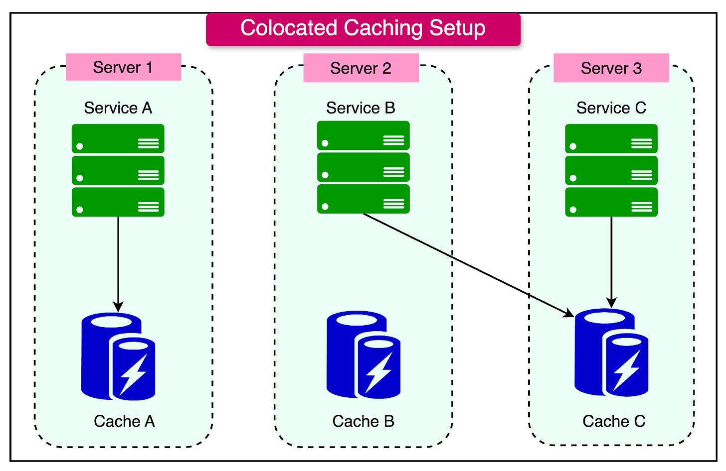 Limited Scalability: Co-located caching setups are less scalable than dedicated cache servers. Scaling the cache would require upgrading the entire server, which may be cost-prohibitive or technically challenging for large-scale applications.