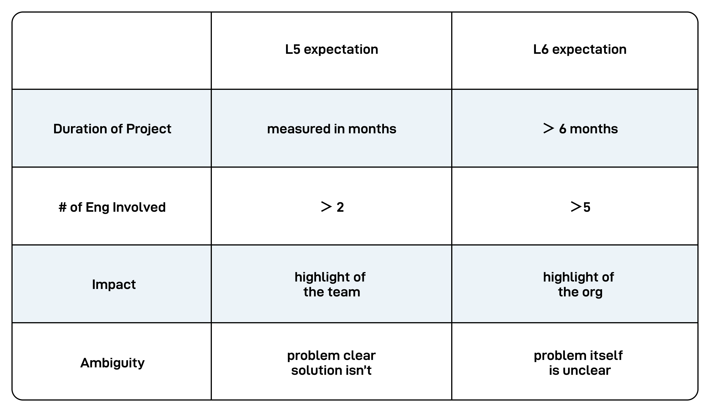 Some say that promotion from IC5 → IC6 is harder than IC6 → IC7 due to the significant behavior changes needed. There are a few major differences between IC5 and IC6.