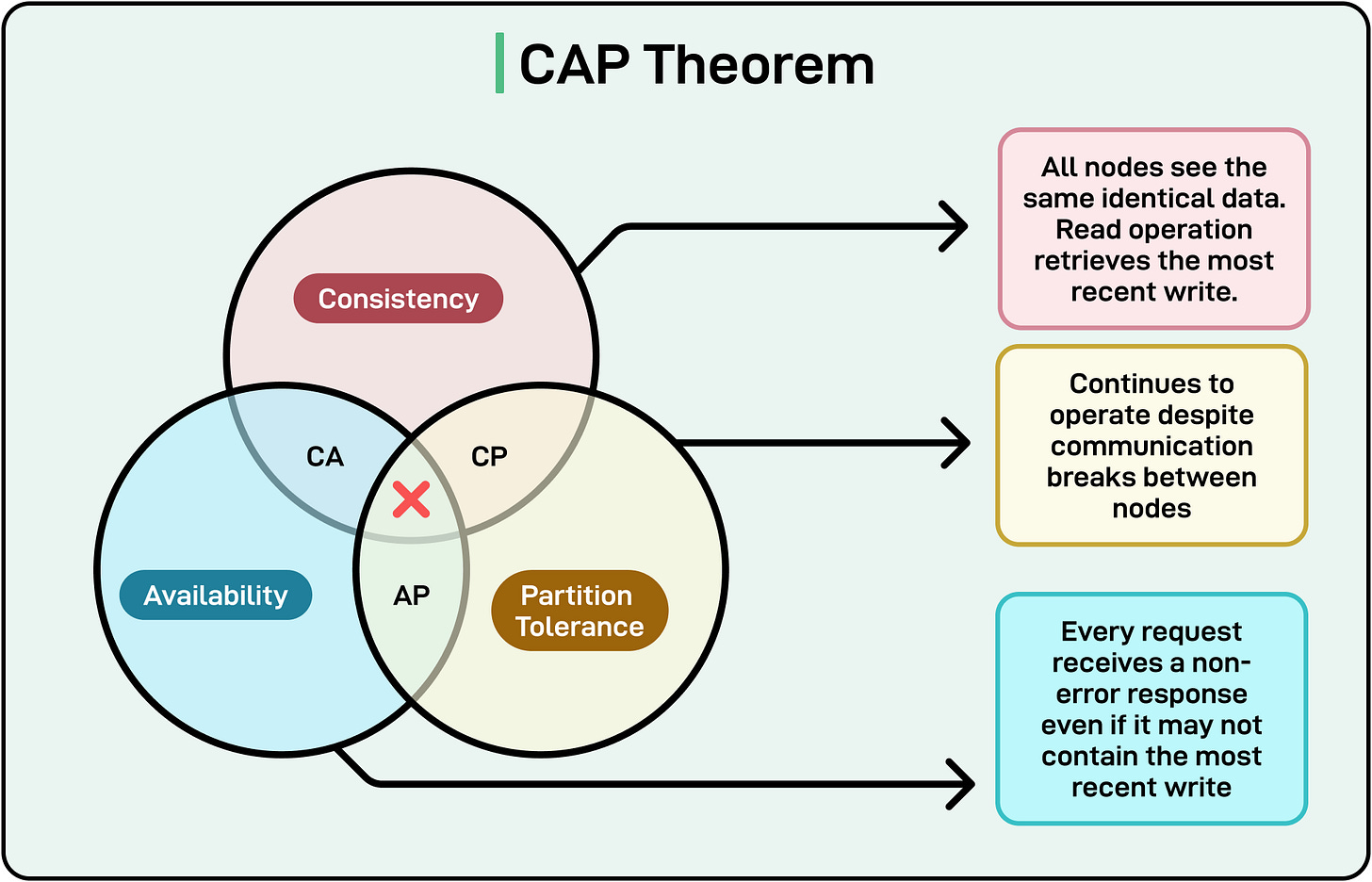 The CAP theorem formalizes this reality. It states that in any distributed system, it’s impossible to guarantee the following three properties at the same time: