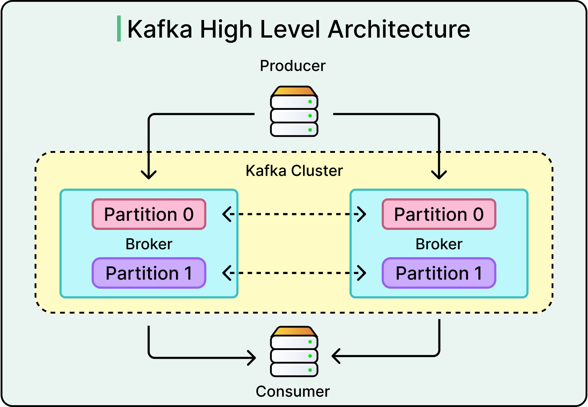 Sitting between them is the broker or the middleman responsible for receiving, storing, and delivering messages. Without the broker, producers and consumers are tightly coupled. With it, they’re decoupled, fault-tolerant, and able to scale independently.