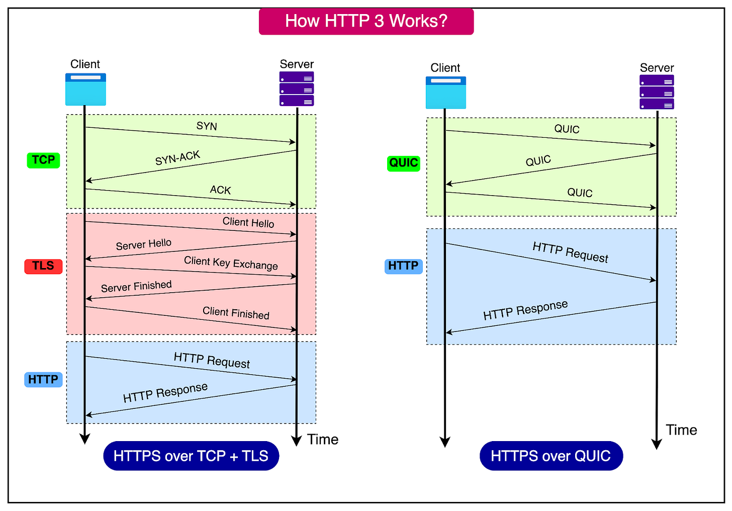 Compare this to HTTP/1.1 and HTTP/2, where a full TCP + TLS handshake might consume two or three round-trips before any request can even begin. QUIC collapses that process into one, or in some cases zero, making everything feel snappier, especially under HTTPS, which is mandatory for HTTP/3.