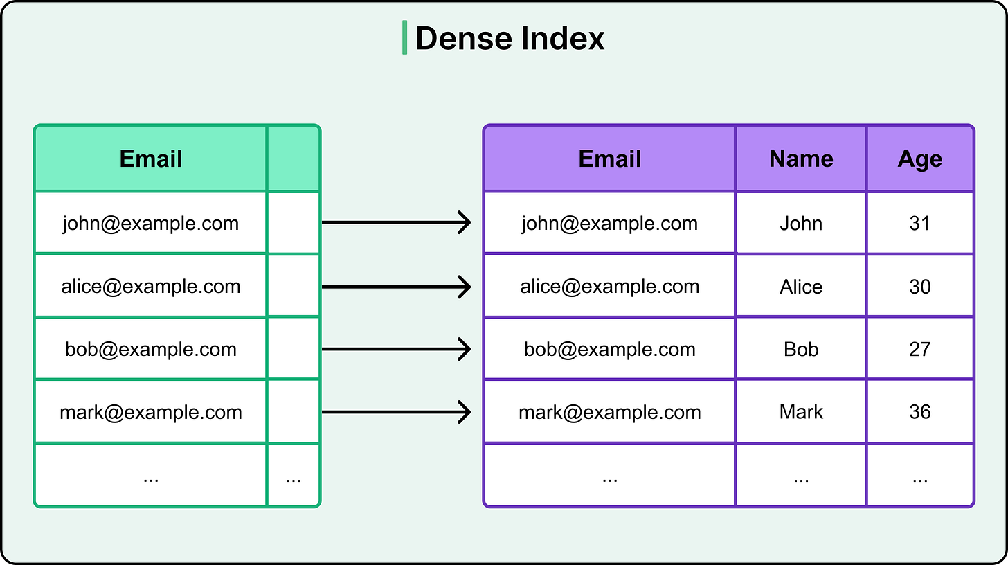 Dense indexes are ideal in read-heavy systems where fine-grained lookups are frequent. For example, consider a users table with a dense index on email: