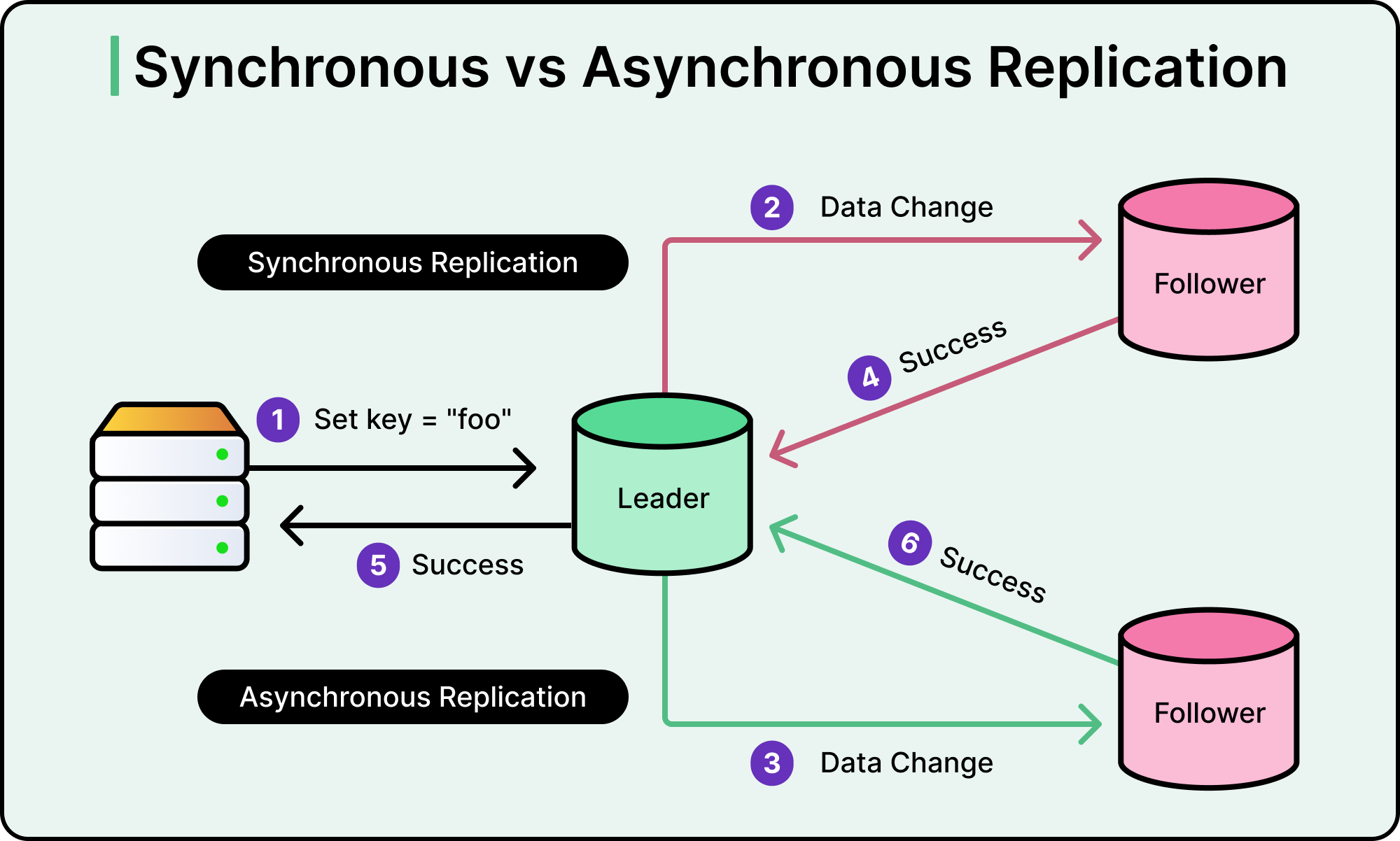 See the diagram below for a comparison between synchronous and asynchronous replication.