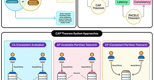 Two models help make sense of this: the CAP theorem and the PACELC theorem. CAP explains why databases must choose between staying available and staying consistent in the presence of network partitions. PACELC extends that reasoning to the normal case: even without failure, databases still trade latency for consistency.