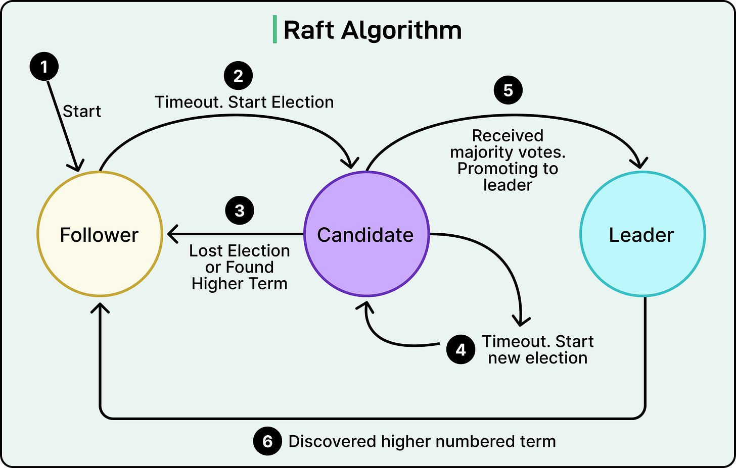 Nodes start as followers. If they go too long without hearing from a leader (via heartbeats), they assume the leader is dead and trigger an election.