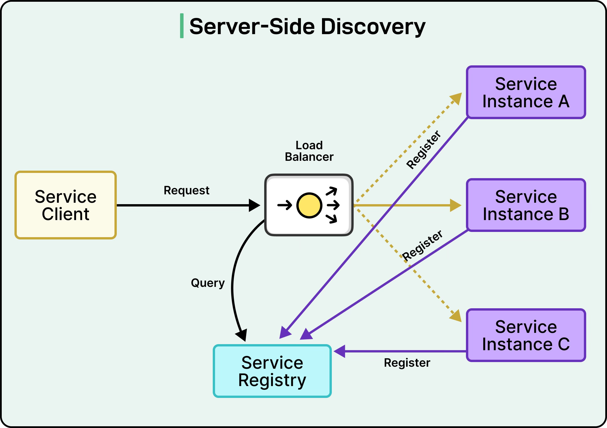 Server-side discovery moves the complexity away from individual services into a dedicated component like a load balancer or API gateway.