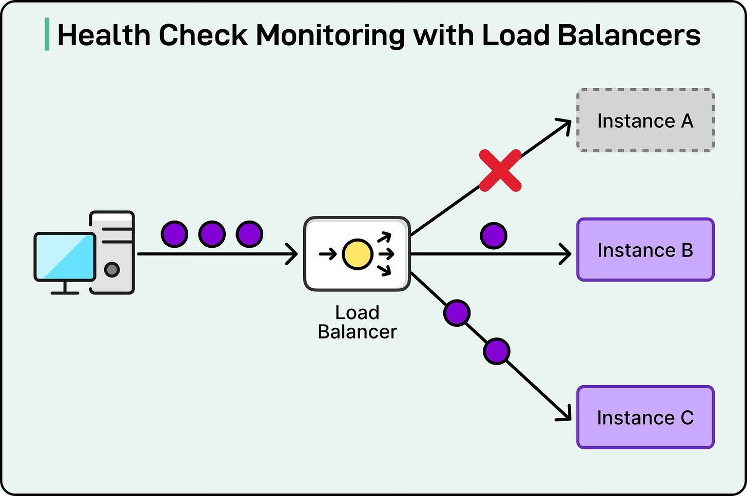 Load balancers must constantly know the health of backend servers. They achieve this by performing periodic health checks as follows:
