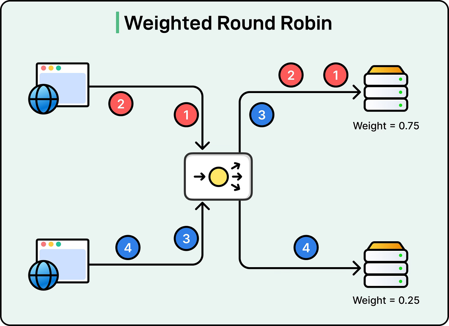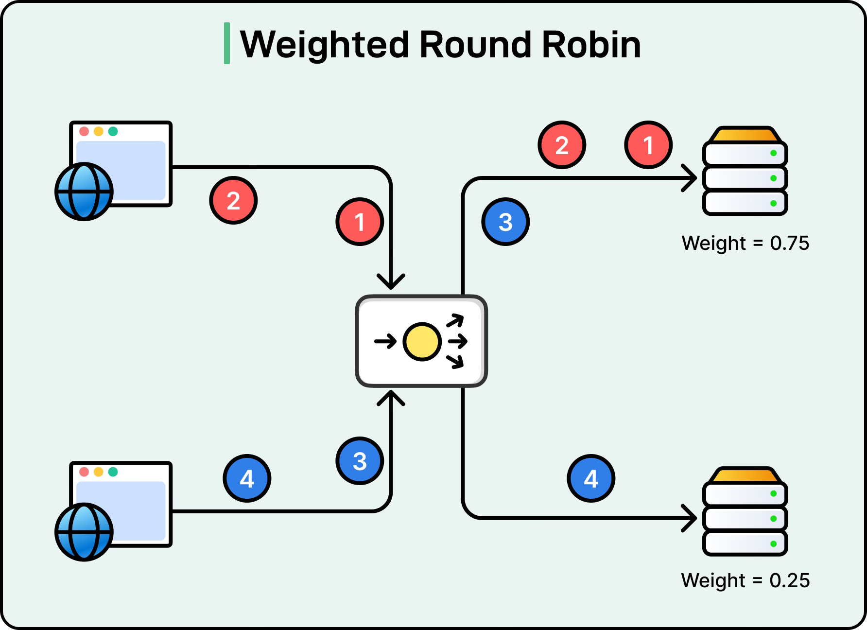 This algorithm is ideal for clusters where servers have heterogeneous hardware. However, weights must be carefully tuned to reflect actual server capabilities.